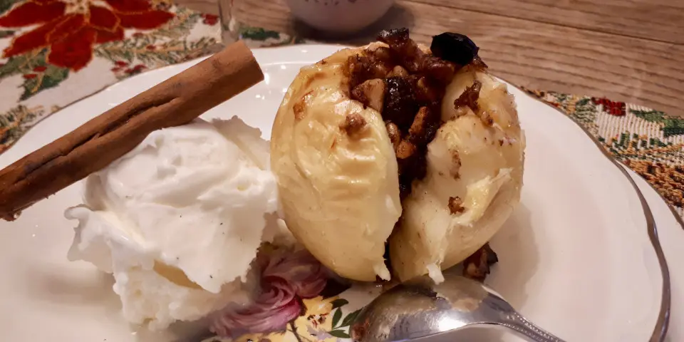 Appelen in de oven met veenbessen en walnoten