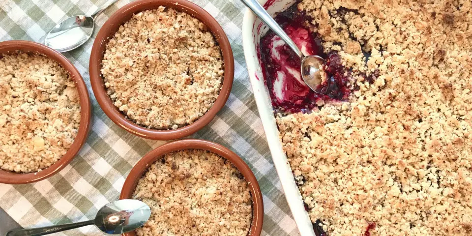 - Bak 30 tot 35 minuten, tot de crumble goudbruin is en de kersen bubbelen.
