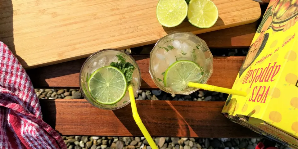- Doe de ijsblokjes en het appelsap bij in het glas en werk de appelsap mocktail af met een schijfje limoen.